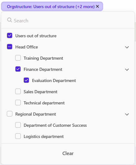 (5) - Orgstructure Filter – the filter displays users in the table based on the selected folders in the organizational structure.